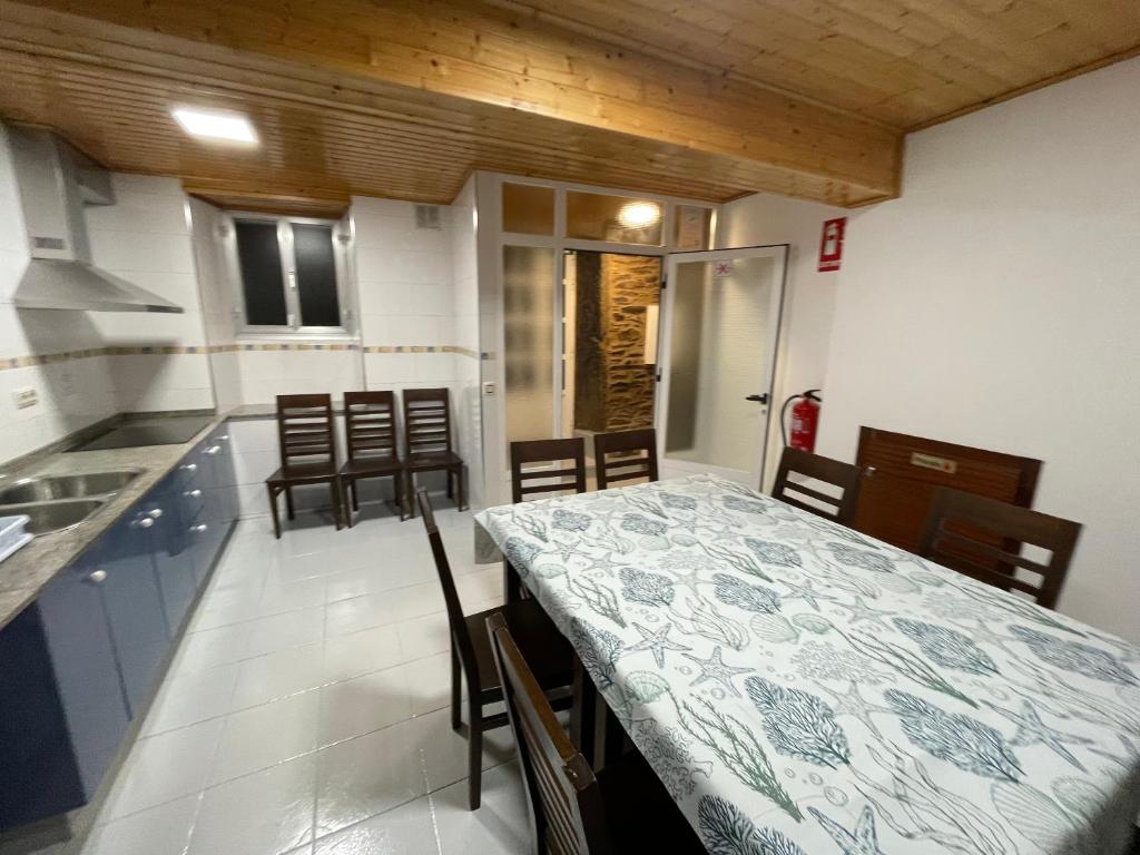 At Albergue Amodino, dining takes on a unique and communal flair with its well-equipped shared kitchen, perfect for travelers looking to whip up their own meals. This inviting space is designed to foster a sense of community among guests, allowing you to connect with fellow travelers as you prepare your favorite dishes. With ample counter space, modern appliances, and a variety of cooking utensils, the kitchen is a culinary haven where you can unleash your inner chef and create delicious meals using fresh, local ingredients. The shared kitchen not only offers the convenience of preparing your own food but also encourages a delightful exchange of culinary traditions among guests. Whether you're a seasoned cook or just looking to experiment with simple recipes, the friendly atmosphere invites you to share tips, recipes, and even meals with others. After a day of exploring the beautiful surroundings of Arzua, gather around the communal dining area to enjoy your creations, savoring the flavors of your journey while making lasting memories with new friends.