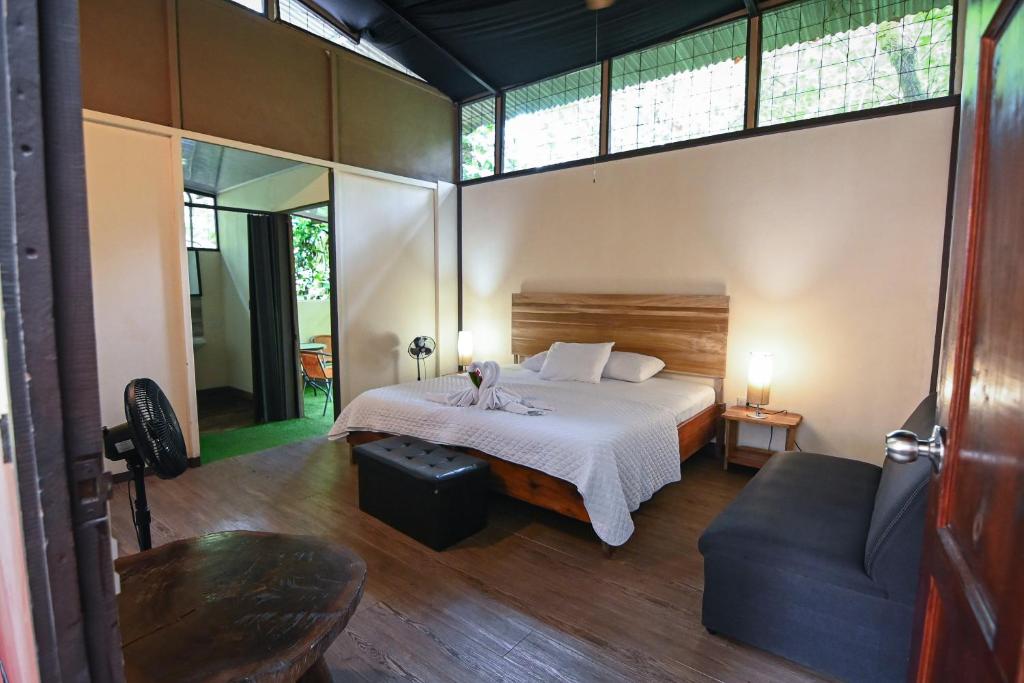 At Chilamate Rainforest Eco-retreat, guests can choose from a selection of thoughtfully designed rooms that seamlessly blend comfort and nature. The Double Room offers a cozy retreat with its spacious 20 square meters, featuring a plush King Bed that invites relaxation after a day of exploration.