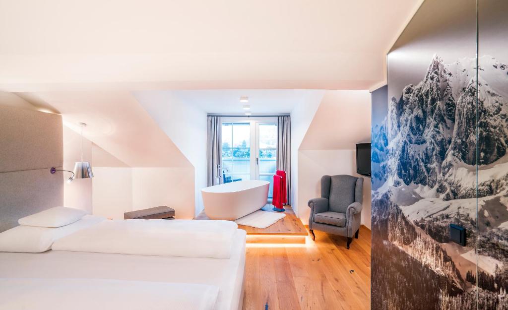 At Das Reisch in Kitzbuhel, guests can choose from a variety of thoughtfully designed rooms to suit their preferences. The Standard Suite offers 45 square meters of space, featuring a cozy Double Bed perfect for restful nights. For those seeking more room and versatility, the Superior Suite spans 90 square meters, accommodating two Single Beds, a Queen Bed, and a Sofa Bed, ideal for families or groups traveling together. Travelers looking for a charming and comfortable retreat can opt for the Deluxe Double Room, a 30-square-meter space with a plush Queen Bed, ensuring a peaceful stay. Booking these rooms through Agoda guarantees you the best prices available, allowing you to enjoy luxury and comfort without the stress of high costs. The platform offers a hassle-free booking experience, so you can secure your ideal room quickly and effortlessly, leaving you more time to plan your adventures in beautiful Kitzbuhel.