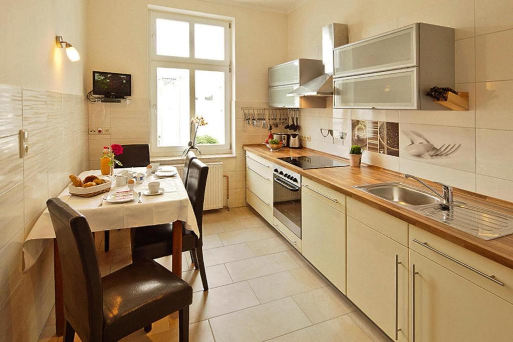 Guests staying at Ferienwohnung Villa See-Eck im Zentrum von Ahlbeck will find a delightful array of dining options just steps from the property.