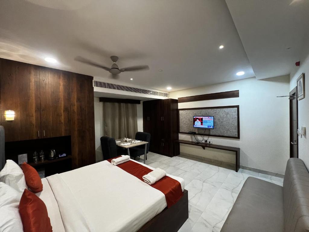 At the hotel JBS MINERVA GRAND, guests can choose from a selection of elegantly designed rooms that cater to every traveler’s needs. The Deluxe Room offers a serene retreat, featuring tasteful decor and a cozy atmosphere, perfect for unwinding after a day of exploring Khammam. For those seeking an elevated experience, the Luxury King Room - Non-Smoking provides a spacious haven, complete with plush bedding and a sophisticated ambiance, ensuring a restful stay in a tranquil setting. Meanwhile, the Suite Room is the epitome of luxury, boasting ample space and exquisite design for guests who desire an indulgent escape. Booking your stay at the hotel JBS MINERVA GRAND through Agoda guarantees you access to the best prices available, making it easier than ever to secure your dream getaway. With a hassle-free booking experience, you can effortlessly select your preferred room type and enjoy peace of mind knowing that your reservation is in good hands. Embrace the comfort and elegance that awaits you at this exceptional the hotel, and let Agoda help you unlock the perfect stay in Khammam.