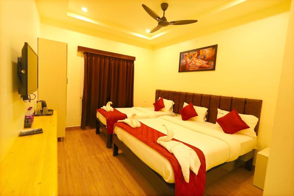 The Deluxe Double Room, spanning 22 square meters, is perfect for couples or solo travelers seeking a cozy and inviting retreat. With its tasteful decor and comfortable ambiance, this room promises a restful stay, allowing guests to unwind after a day of exploration. For families traveling together, the Family Room also measures 22 square meters and provides a spacious environment for bonding and relaxation. This room is designed with the needs of families in mind, ensuring that everyone has ample space to enjoy their time together. For those who desire a touch of luxury, the King Suite at 28 square meters offers an expansive layout, ideal for guests looking to indulge in a more lavish experience. Each room type at the hotel Vijaya Grand is meticulously crafted to provide a serene atmosphere, making it a perfect choice for travelers of all kinds. Booking your stay at the hotel Vijaya Grand through Agoda guarantees you access to the best prices available, ensuring that you get excellent value for your experience. The hassle-free booking process allows you to secure your ideal room effortlessly, so you can focus on enjoying your time in Srikalahasti without any stress.