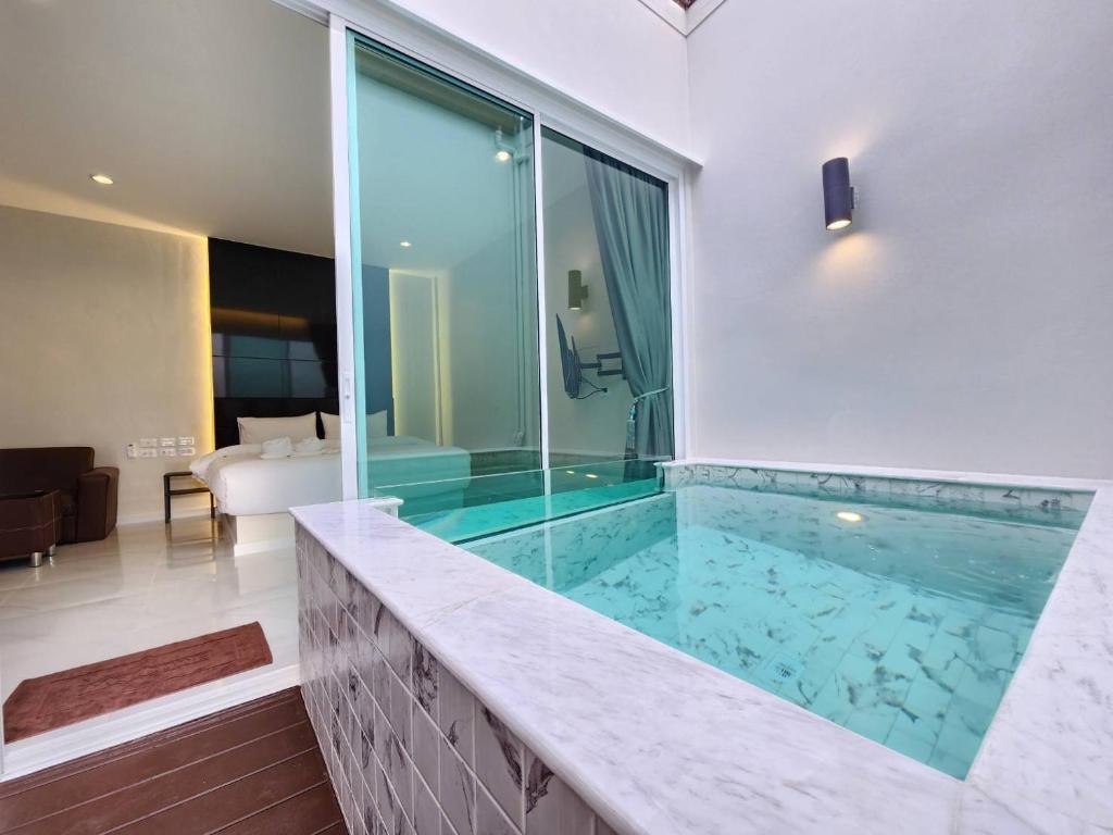 PVILLA in Samut Prakan, Thailand, offers a range of exquisite room options to cater to every traveler's needs. With spacious interiors and tasteful decor, PVILLA ensures a memorable stay for its guests. The Deluxe Double Room, spanning 32 square meters and featuring a plush King Bed, provides ample space for relaxation and rejuvenation. For solo travelers, the Deluxe Single Room, covering 18 square meters and furnished with a comfortable Single Bed, offers a cozy retreat. Those seeking ultimate luxury can indulge in the Junior Suite with Private Pool, providing an exclusive and intimate experience. With its regal King Bed and lavish amenities, this suite is perfect for couples or honeymooners. Additionally, the King Room with Pool View, spanning 32 square meters and boasting a comfortable King Bed, offers breathtaking views of the pool and surroundings. Booking any of these rooms on Agoda guarantees the best prices and a hassle-free experience, ensuring that guests can focus on enjoying their stay at PVILLA.