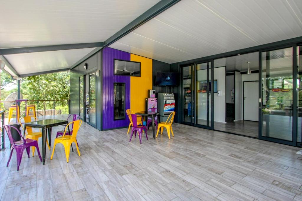 The shared lounge and TV area is a fantastic space to connect with others and make lasting memories during your stay at SleepOver Kruger Gate.