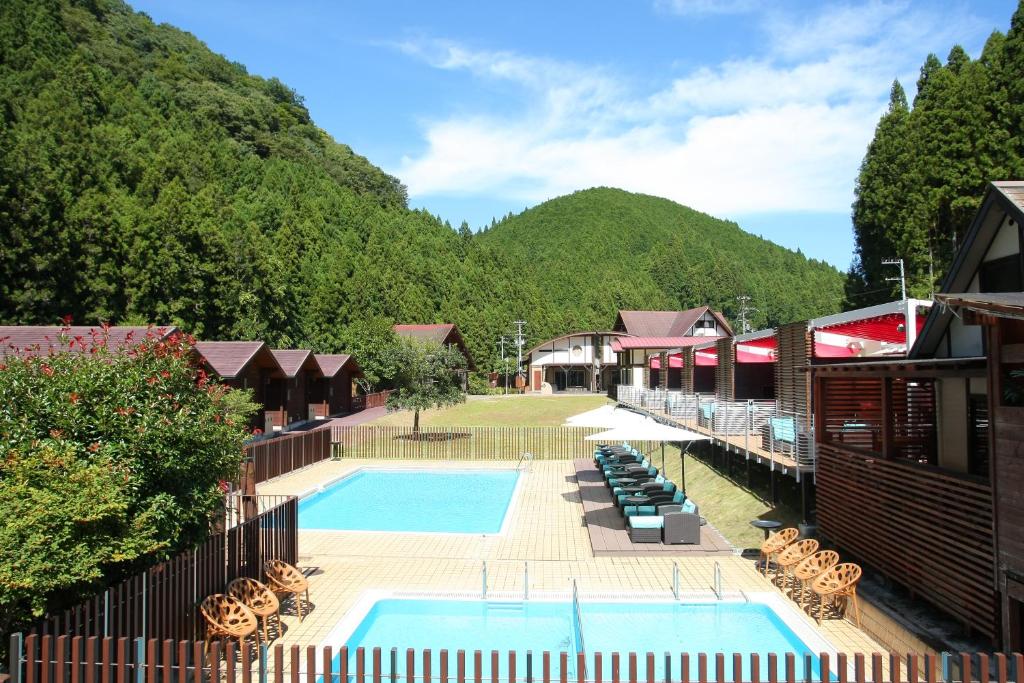 Featuring mountain views, Tamayura no Sato in Kimino features accommodation, a seasonal outdoor swimming pool, a garden, a terrace and a restaurant.