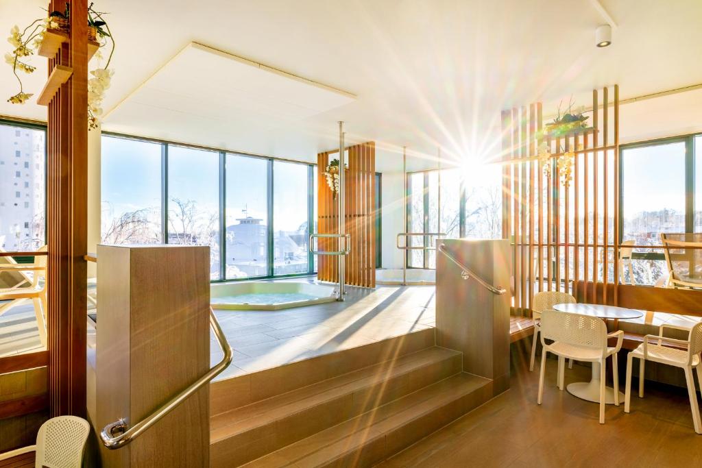 This serene space offers a perfect escape from the bustle of everyday life, allowing visitors to unwind and rejuvenate their senses. The steam room is designed with comfort in mind, featuring soothing steam that envelops you in warmth, promoting relaxation and enhancing your overall well-being. The ambiance is tranquil, creating an inviting atmosphere where guests can enjoy a moment of peace. Whether you're returning from a day of exploring Tartu's cultural landmarks or simply looking to recharge, the steam room serves as an ideal retreat. Embrace the calming effects of the steam as it helps to alleviate stress and tension, making your stay at Tartu Hotell not just a getaway, but a holistic experience for both body and mind.