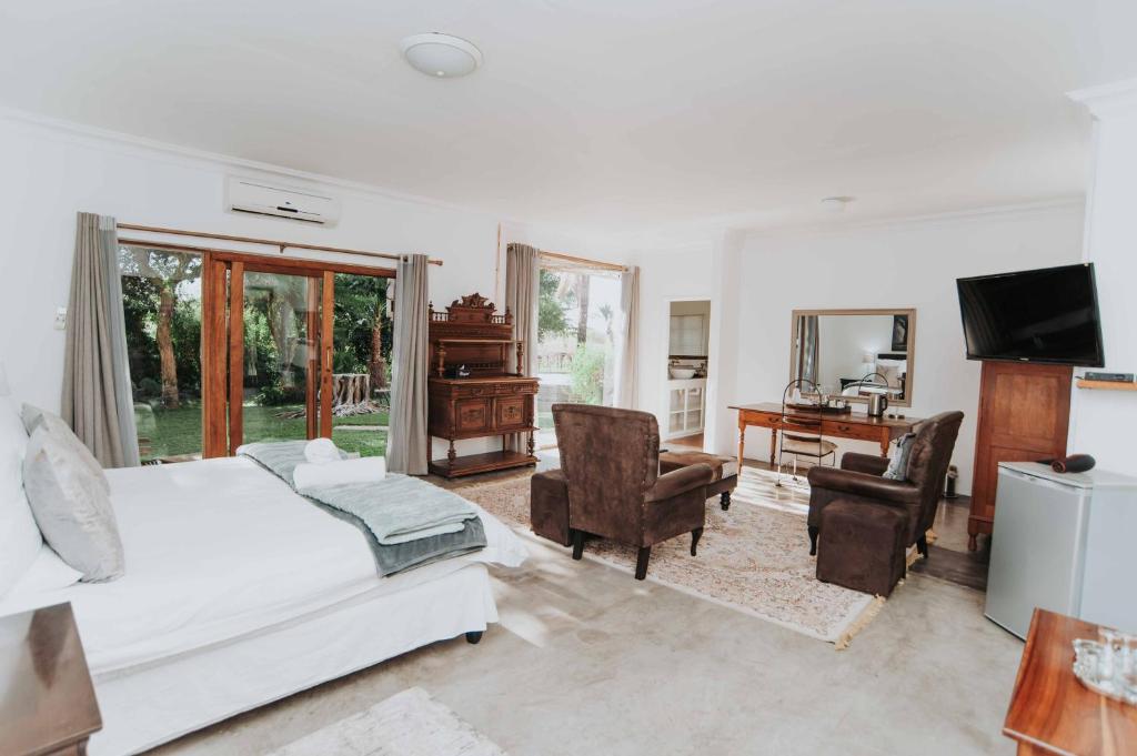 Stay entertained with satellite/cable TV on a flat-screen television, or simply relax in a plush bathrobe after enjoying the luxurious toiletries provided. With a refrigerator and complimentary bottled water at your disposal, you can stay refreshed and hydrated throughout your stay, ensuring that your time at African Vineyard is as comfortable and enjoyable as possible.