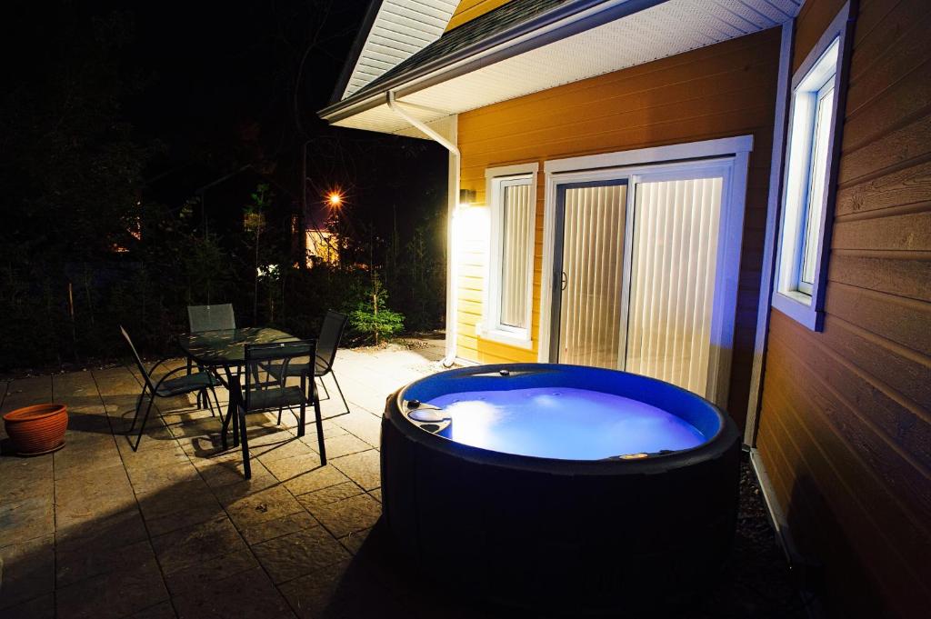 At Belle de Nuit in Wakefield, QC, guests can indulge in a serene escape, enhanced by the the hotel’s thoughtfully designed entertainment facilities. The highlight of your stay may very well be the inviting hot tub, where you can soak away your cares while surrounded by the tranquil beauty of nature. Picture yourself relaxing in the warm, bubbling water, with the soothing sounds of the nearby forest creating a peaceful ambiance. This rejuvenating experience is perfect for couples looking to reconnect or individuals seeking a moment of calm after a day of exploration. In addition to the hot tub, Belle de Nuit boasts a beautifully landscaped garden that serves as an enchanting backdrop for leisurely strolls or quiet reflection. The garden is meticulously maintained, featuring a variety of local flora that adds vibrant colors and delightful fragrances to your surroundings. Whether you choose to sip your morning coffee amidst the blooms or unwind with a good book in the afternoon sun, the garden offers a perfect blend of relaxation and natural beauty, making it an ideal spot for guests to recharge and enjoy the outdoors.