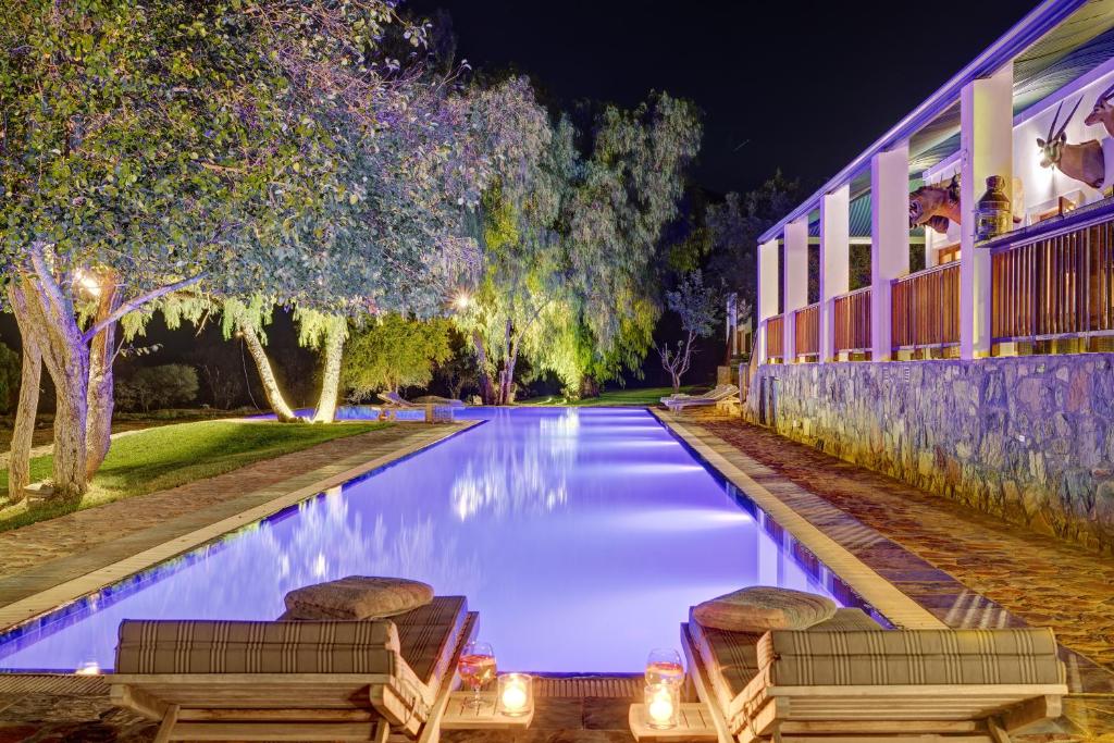 Experience the beauty of the South African wilderness without breaking the bank at Buccara Wildlife Reserve. With an average room price of just $113, this stunning retreat offers exceptional value for money. Compared to the average price of a the hotel room in Graaff-Reinet, which stands at $83, Buccara Wildlife Reserve provides a truly luxurious experience at an affordable price. From the moment you step into your spacious and elegantly decorated room, you'll be enveloped in comfort and tranquility. Indulge in the breathtaking views of the surrounding wildlife reserve, where you can spot a variety of exotic animals in their natural habitat. Take advantage of the resort's top-notch amenities, including a refreshing swimming pool, a spa that offers rejuvenating treatments, and a gourmet restaurant that serves delectable local cuisine. Whether you're a nature enthusiast, a wildlife lover, or simply seeking a peaceful getaway, Buccara Wildlife Reserve offers an unforgettable experience that won't break the bank. Book your stay today and immerse yourself in the beauty of South Africa's wilderness.