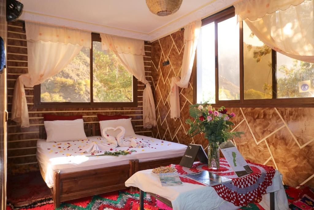 Dar Adouss in Imlil, Morocco, offers a range of comfortable and varied room options to cater to every traveler's needs. Whether you are traveling with your family, friends, or solo, there is a perfect room for you. The Deluxe Double Room is ideal for two adults and one child, providing ample space with two single beds. For those seeking stunning mountain views, the Double or Twin Room with Mountain View offers a cozy space with a double bed. Families or groups of friends can opt for the Quadruple Room with Mountain View, which can accommodate up to four guests with a choice of four single beds, two single beds, or one double bed. Solo travelers will find the Small Double Room or Standard Double Room, both offering a single bed and a cozy ambiance. Booking these rooms on Agoda guarantees the best prices and a hassle-free experience, ensuring you can enjoy your stay at Dar Adouss to the fullest.
