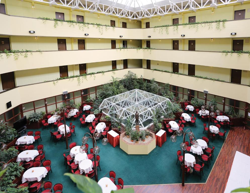 Bathrobes are provided, and all the rooms are air-conditioned. The Nádor Restaurant features a terrace and serves Hungarian and international cuisine as well as special dietary and healthy dishes. There is a garden bar in summer and an espresso bar in the Atrium. There is a souvenir shop, a library, and a room for card playing.