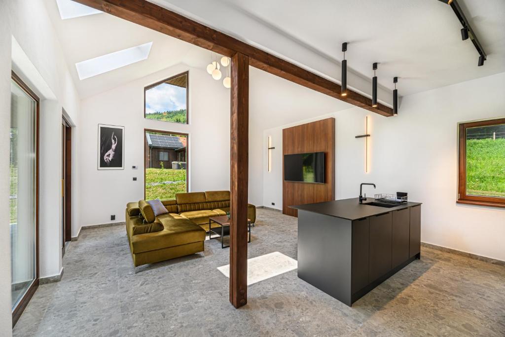 The holiday home provides guests with a terrace, mountain views, a seating area, cable flat-screen TV, a fully equipped kitchen with a dishwasher and a microwave, and a private bathroom with walk-in shower and a hair dryer. A toaster, a fridge and stovetop are also available, as well as a kettle. At the holiday home, each unit is fitted with bed linen and towels.