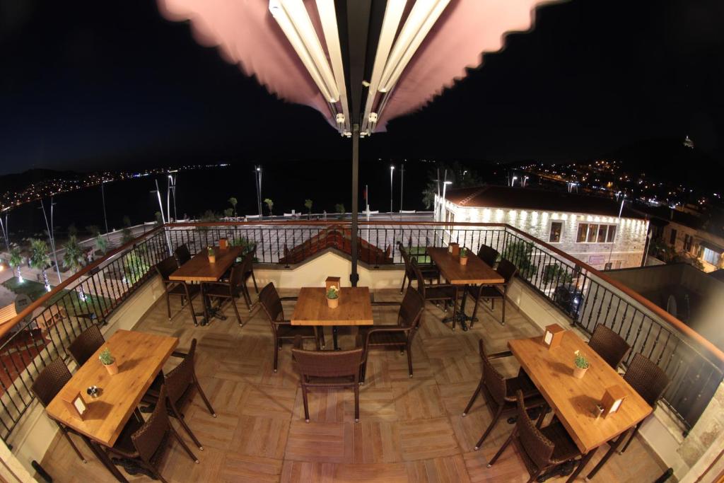 Each room features a private balcony or terrace, allowing you to soak in the stunning views of Fevzi Çakmak while enjoying your morning coffee or evening relaxation. For your entertainment, a modern television equipped with satellite/cable channels awaits, ensuring you never miss your favorite shows while on vacation.