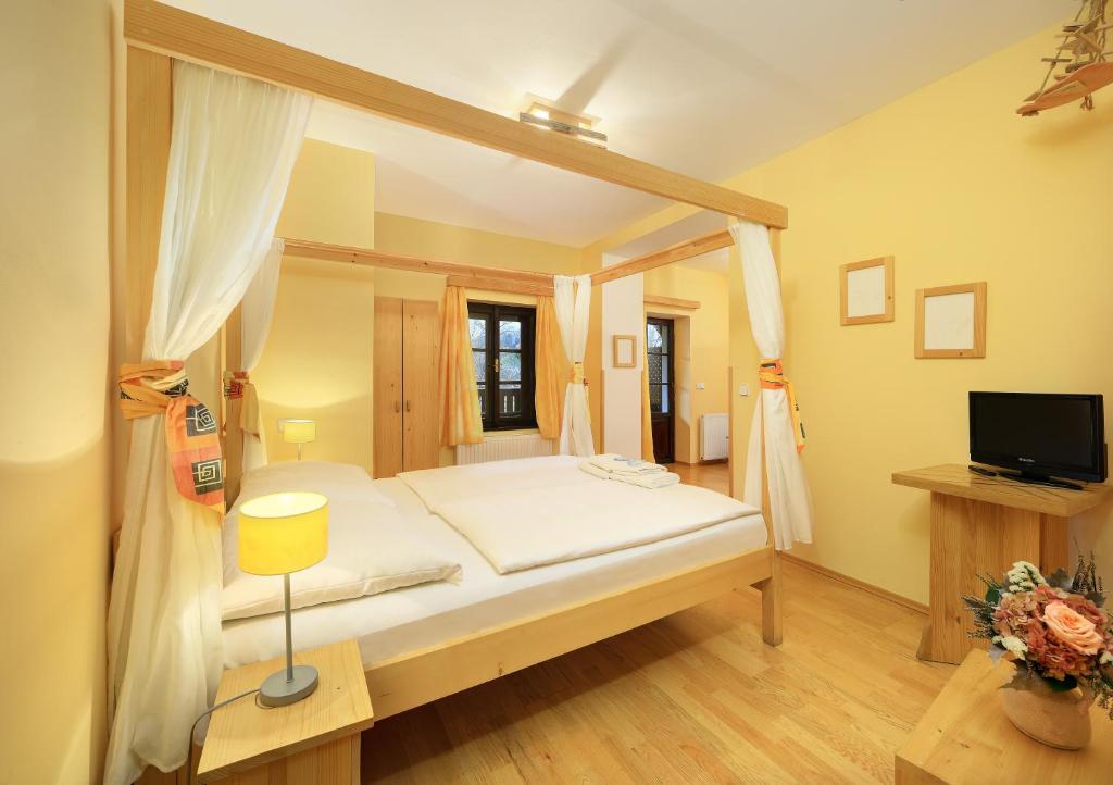 The Deluxe Double Room spans 18 square meters and features either 1 Single Bed or 1 Queen Bed, providing a cozy and inviting space for solo travelers or couples. For those seeking a bit more space, the Deluxe Triple Room offers 23 square meters of room to relax and unwind, with the choice of 1 Single Bed or 1 Queen Bed. Additionally, the Double or Twin Room, spanning 15 square meters, provides a comfortable retreat with a choice of 1 Single Bed. Booking these fantastic room options on Agoda not only ensures the best prices but also guarantees a hassle-free experience. With Agoda's user-friendly platform, guests can easily browse through different room types, compare prices, and secure their reservation with just a few clicks. Book your stay at the hotel Garni Mysi Dira through Agoda today and enjoy a comfortable and convenient stay in Cesky Krumlov.