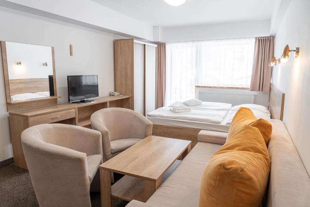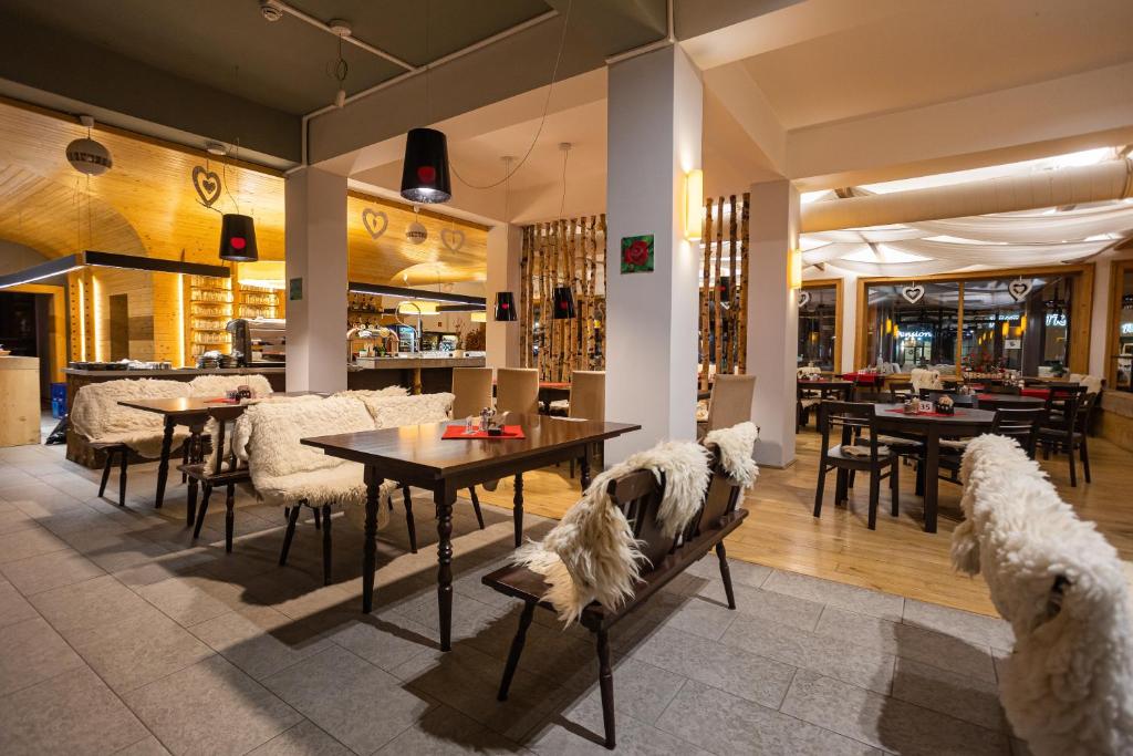 Whether you're craving a hearty breakfast to start your day or a memorable dinner after exploring the stunning surroundings of Strbske Pleso, our restaurant provides a warm and welcoming atmosphere for all guests. Complement your meals with a selection of beverages from our cozy coffee shop, perfect for relaxing moments and casual conversations.