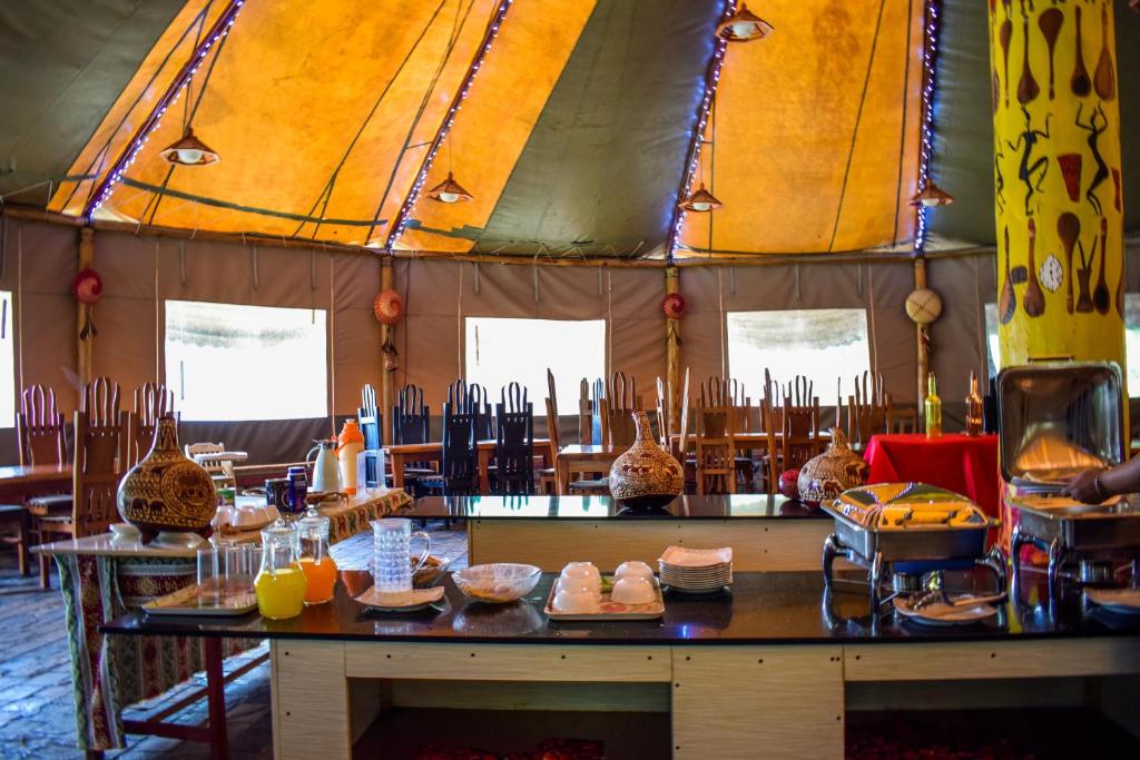 At Mara Chui Eco-Resort, we understand that dining is an essential part of any memorable vacation. That's why we offer a range of exceptional dining facilities to cater to every palate. Our highlight is the BBQ facilities, where you can savor the smoky flavors of grilled meats and vegetables while enjoying the breathtaking views of the surrounding wilderness. Gather around the fire pit with your loved ones and create unforgettable memories as you indulge in a delightful culinary experience. In addition to our BBQ facilities, we also provide daily housekeeping to ensure that your dining experience is always clean and comfortable. Our dedicated staff will take care of all the cleaning and tidying up, allowing you to fully immerse yourself in the joy of dining without any worries. Whether you choose to dine in the cozy ambiance of our restaurant or enjoy a picnic in the picturesque outdoor areas, you can rest assured that our team is committed to providing you with the highest level of service and hospitality. At Mara Chui Eco-Resort, we believe that dining should be an experience that tantalizes all your senses. From the tantalizing aromas of freshly grilled delicacies to the stunning views that surround you, every meal at our resort is a feast for the senses. So come and embark on a culinary adventure with us, and let your taste buds be delighted by the flavors of Kenya's vibrant cuisine.