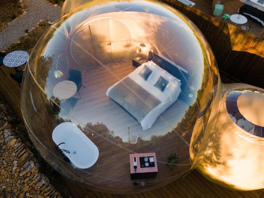 The charming bar serves as a social hub, where you can sip on expertly crafted cocktails or sample a selection of local wines while mingling with fellow travelers. The inviting atmosphere, complemented by warm lighting and comfortable seating, makes it the perfect spot to unwind after a day of exploration or to kickstart your evening with friends. For those seeking a touch of luxury, the hot tub offers a serene escape. Nestled within the lush garden, it provides a tranquil setting to soak away your cares while surrounded by nature's beauty. The gentle sound of water and the fragrant blooms create a peaceful ambiance, perfect for both relaxation and rejuvenation. Whether you’re looking to enjoy a romantic evening under the stars or simply wish to bask in the soothing warmth, the hot tub at Noches de Calig is an ideal retreat. Together, these entertainment facilities promise an unforgettable experience filled with leisure and delight.