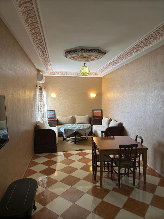 Indulge in the flavors of Morocco as you savor delicious street food and traditional Moroccan cuisine in the neighborhood's charming cafes and restaurants. Nature enthusiasts will be delighted by the proximity to stunning natural wonders. Just a short drive away, you will find the majestic Atlas Mountains, offering breathtaking hiking trails and panoramic views. Explore the nearby UNESCO World Heritage site of Ait Ben Haddou, a fortified city that has been featured in many famous films, including Game of Thrones and Gladiator. After a day of adventure, retreat to Residence dikre, where you can relax in comfortable and well-appointed rooms. Enjoy the the the hotel's tranquil courtyard, where you can unwind with a cup of Moroccan tea and soak in the peaceful atmosphere. With its prime location in Tigami Ljdid du Nord, Residence dikre is the perfect base for exploring the wonders of Ouarzazate and creating unforgettable memories.
