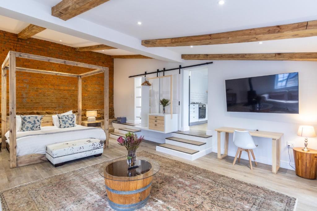 At Sunset Farm Stellenbosch, each room is designed to provide a perfect blend of comfort and convenience, ensuring that your stay is as enjoyable as possible. Guests can unwind and relax in well-appointed accommodations featuring a cozy balcony or terrace, where you can savor the breathtaking views of the surrounding vineyards and mountains. The rooms are equipped with a modern television that offers a variety of satellite and cable channels, allowing you to catch up on your favorite shows or enjoy a movie night in the comfort of your own space.