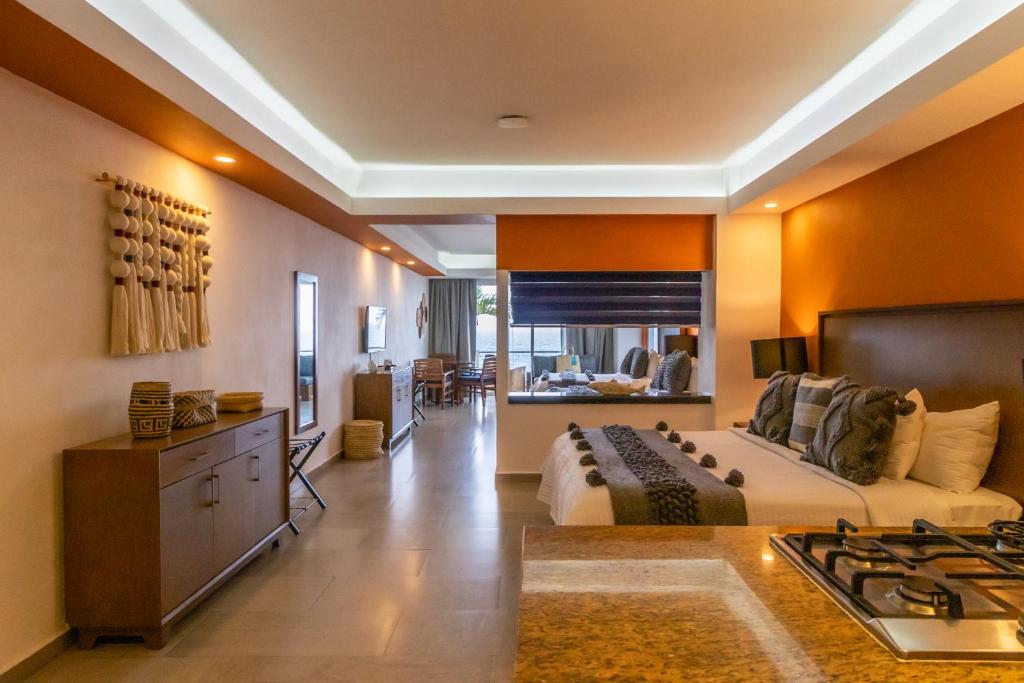 Indulge in the ultimate beachfront getaway at The Paramar Beachfront Boutique the hotel in downtown Malecon, Puerto Vallarta. With a variety of room types to choose from, this the hotel offers a range of options to suit every traveler's needs. Experience pure comfort and elegance in the Double Grand Suite with ocean view, featuring two queen beds and a spacious 50 square meters of living space.