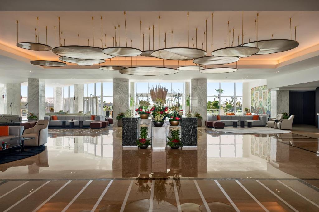 Guests at Villas And Suites Sharm El Sheikh are perfectly positioned to explore a variety of shopping landmarks that cater to every taste and preference. Just a stone's throw away, Genena City offers a vibrant shopping experience with its diverse selection of boutiques, souvenir shops, and local artisans showcasing their crafts. For those seeking adventure and unique experiences, Jora Tours provides not just excursions but also a range of travel accessories and local goods to take home. Additionally, the lively atmosphere of SOHO Square is a must-visit, where you can find an eclectic mix of international brands, charming cafes, and entertainment options, making it a perfect spot for a leisurely evening of shopping and dining. Whether you're hunting for the perfect memento or indulging in a retail therapy session, these nearby shopping landmarks ensure that your stay is both enjoyable and memorable.